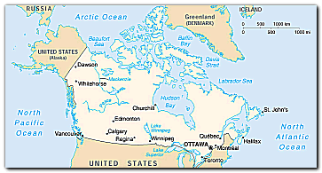 Geographynote: second-largest country in world (after Russia); strategic location between Russia and US via north polar route; nearly 90% of the population is concentrated within 160 km of the US/Canada border Population: 31,006,347 (July 1999 est.)